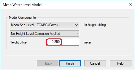 | MWL Model Height Model | The name of the selected Height correction model, as selected in your template setup (Edit, Advanced Settings, Mean Water Level Model). Note the additional Parameter property 'Short' or 'Full'. | |