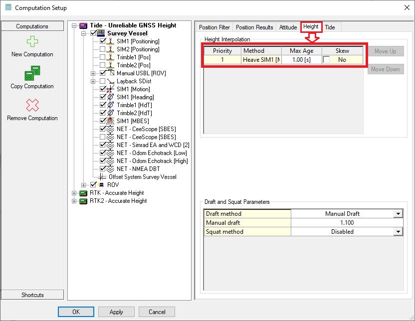 However, if working with a towed object or ROV that is providing depth relative to water level, you will need to set up a HADR and a Draft online.