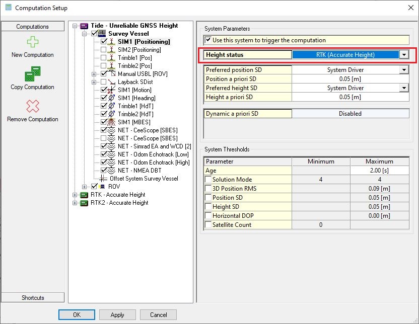 Set the Height status of the positioning system in the Online - Settings - Computation Setup to "RTK (Accurate Height)".