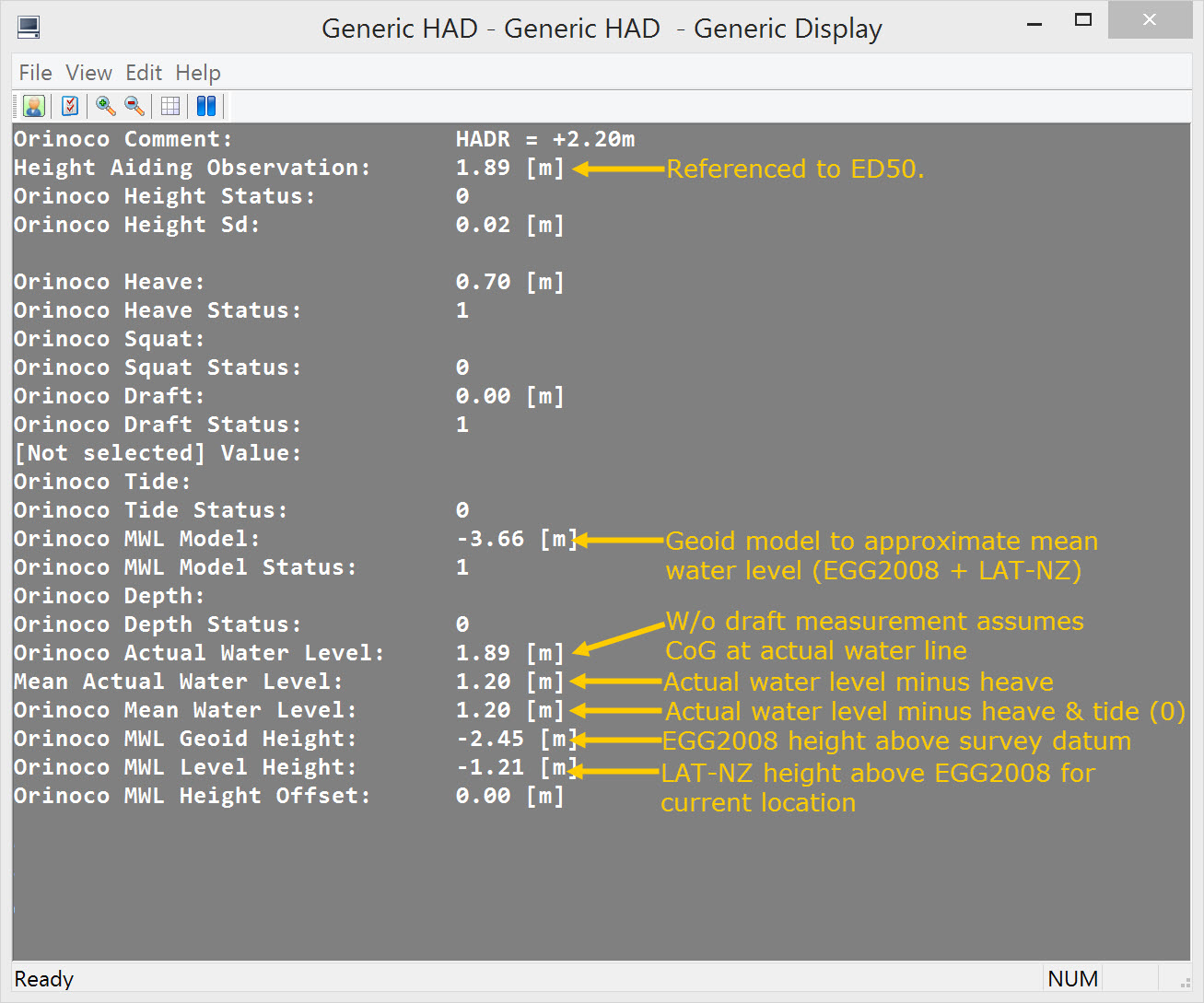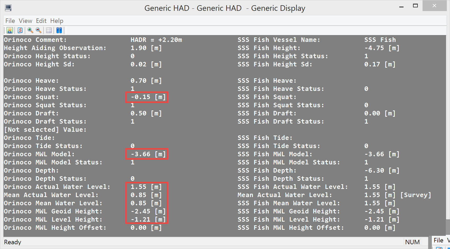 | Mean Actual Water Level | The Actual Water Level (see above) minus the heave of the object, so i.e. the actual water level without the swell influence. Datum: