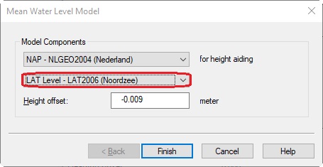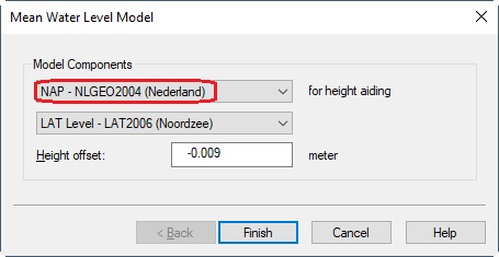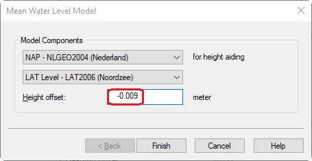 The height offset above level datum. This is a fixed offset value as entered in the database setup, Edit menu, Advanced settings, Mean Water Level Model.