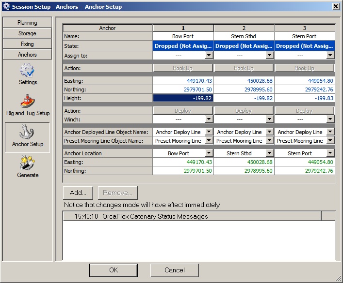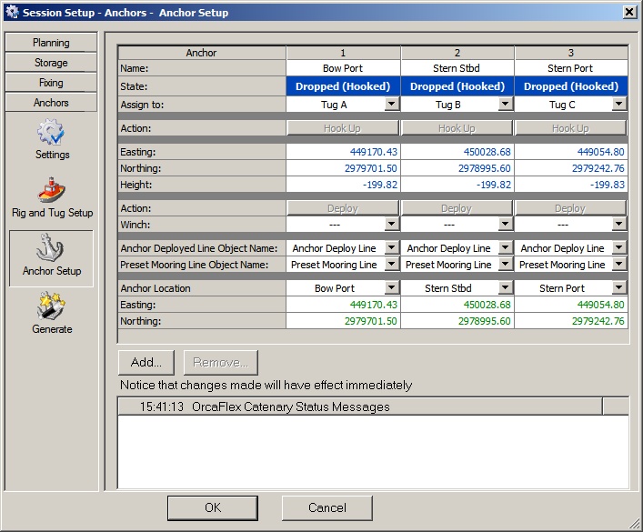 Comment | Anchor co-ordinates not set | Anchor co-ordinates set | Tug assigned, Rig not assigned | Tug assigned, Rig assigned | Tug assigned, Rig assigned | Tug not assigned, Rig assigned | ||||||