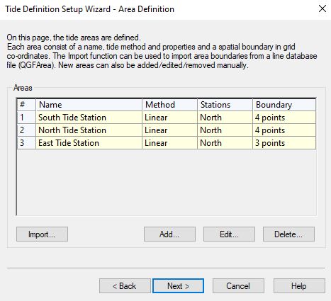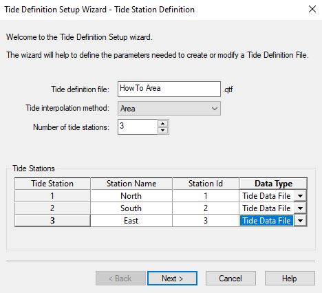 Later on in the wizard the stations will be assigned to the area(s). - Set unique Station Names, Station Id’s and the Data Type (usually 'Tide Data File' if gauges are used):