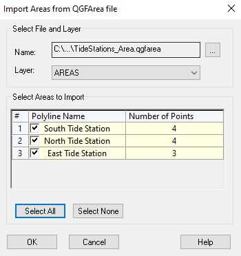 The Import dialog shows only polylines with at least 3 points. - Select the Area(s) you wish to import.