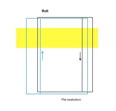 Roll: two lines over a flat area in opposite directions with same speed (transducer tracks on top of each other)
