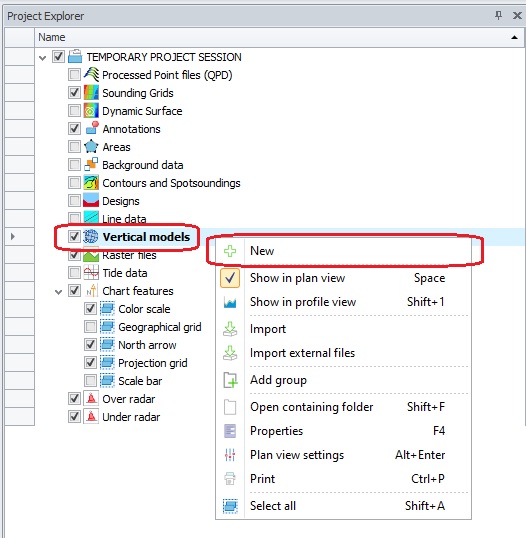 In the Project Explorer tree - Vertical models: click with the right mouse button