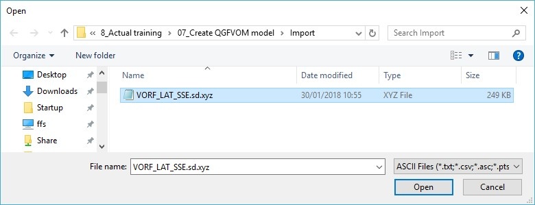 Importing ASCII points into a Vertical Offset Model file (QGFvom)