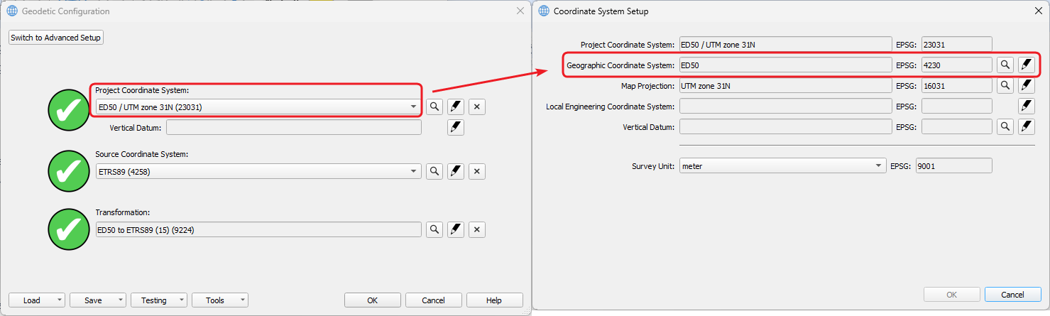 This is the reason why the user cannot select any other datum than Horizontal/Survey Datum to correctly convert to Easting Northing on the Projection.
