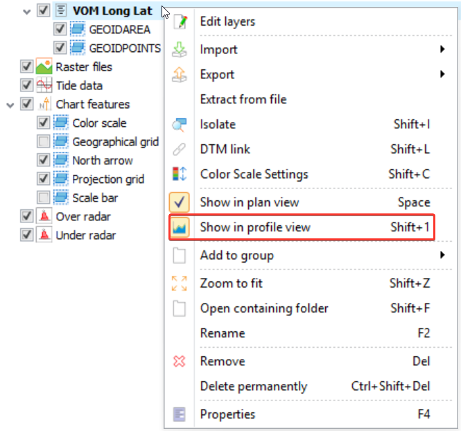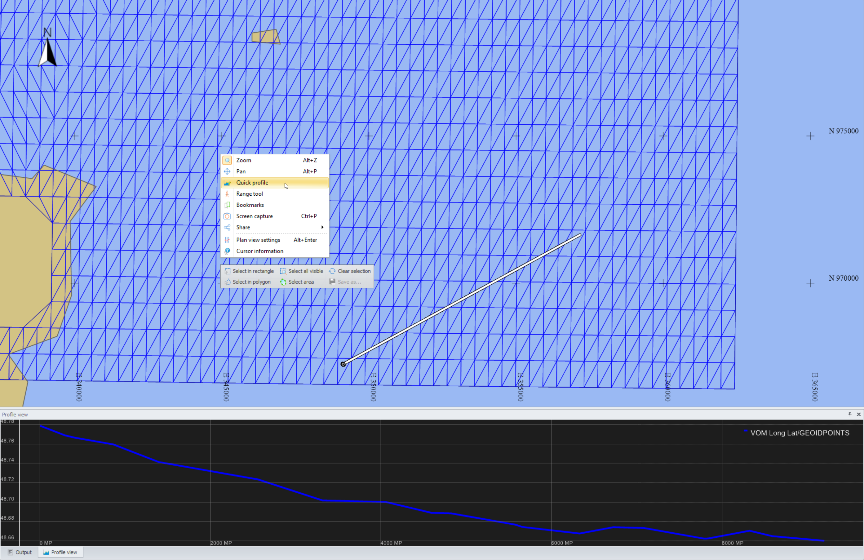 Use the right mouse menu again to return to the color scale used earlier.The easiest way to check the heights, is to draw a Quick profile.