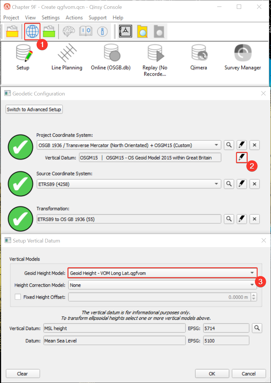 Note that the QGFVOM can also be placed in the following folder so that it can be selected in all your QPS projects: C:\Users\Public\Documents\QPS\Shared\Geo\GeoidIn the Console - open the Geodetic Configuration Overview - set up the Geoid Height Model - in the drop down menu the predefined Geoid Height Models can be selected.