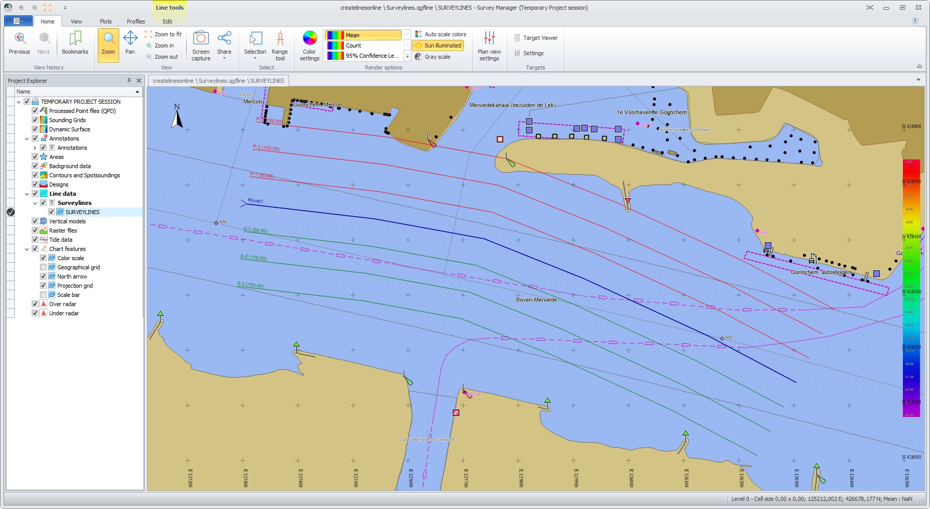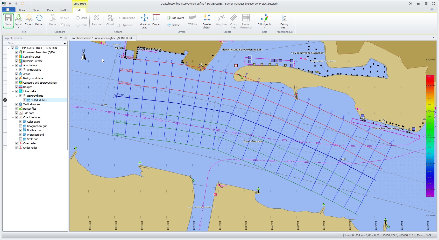 Now, you can create lines using the Navigation Display and the Survey Manager at the same time, going back and forth between the two applications to optimize the lines for your project.