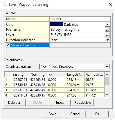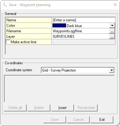 The Save - Waypoint planning dialog will open: