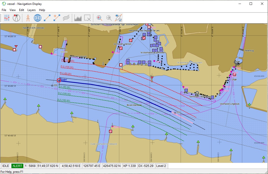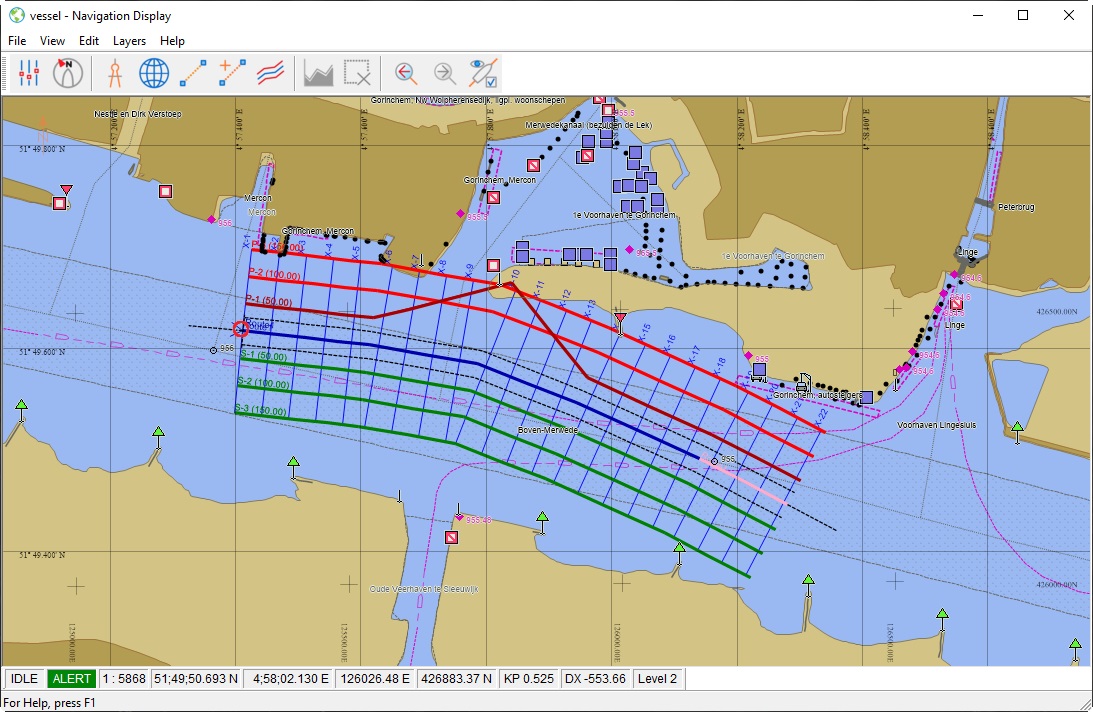 The lines created in the Survey Manager are now shown in the Navigation Display: