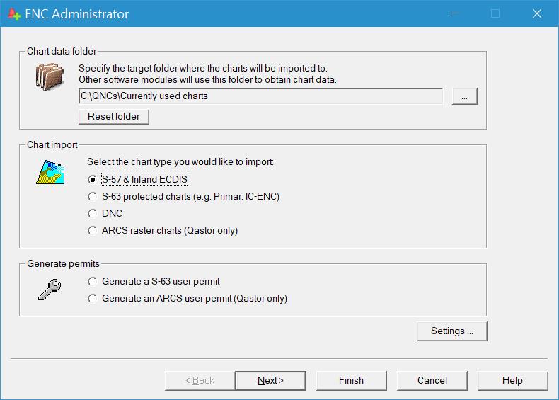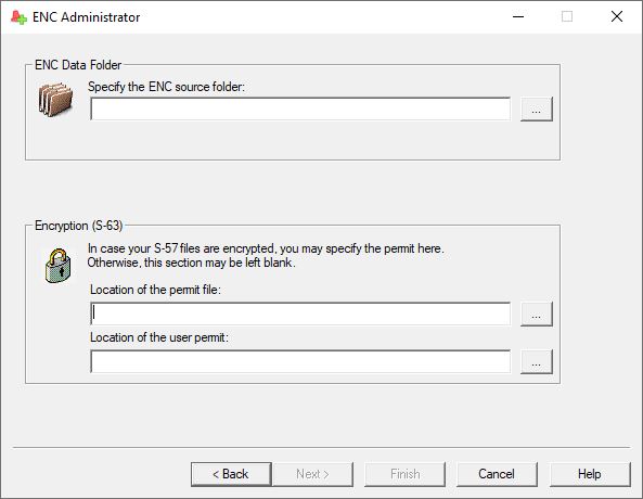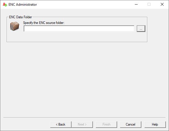 | ENC target folder | Set the correct ENC target folder using the browse button [...] on the right. When no other importing or generating of files is needed, just setting the folder will be sufficient, followed by pressing the Finish button. |