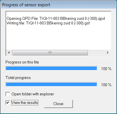Open folder with explorer | Tick this box to view all files present in the target folder. The target folder is the folder the *.gsf file was saved in. |