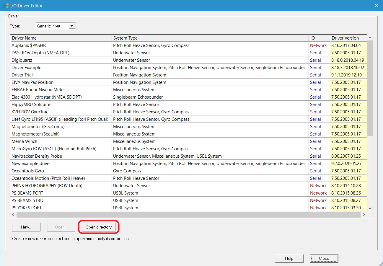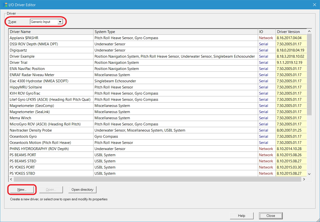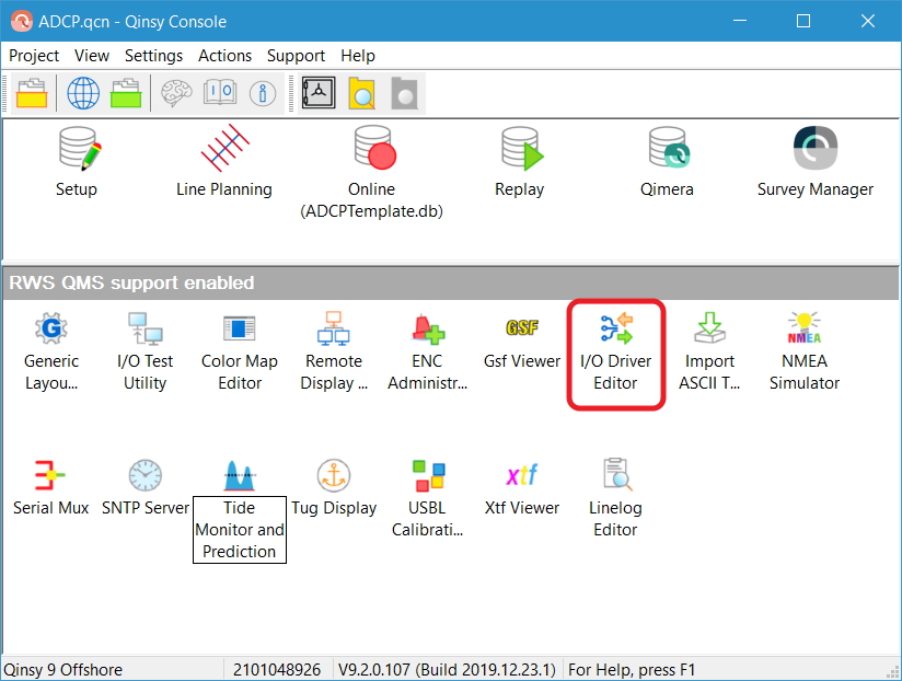 In order to use drivers, created in older Qinsy versions, you will need to open them in the I/O Driver Editor and click through the settings (Next, Next, Finish).