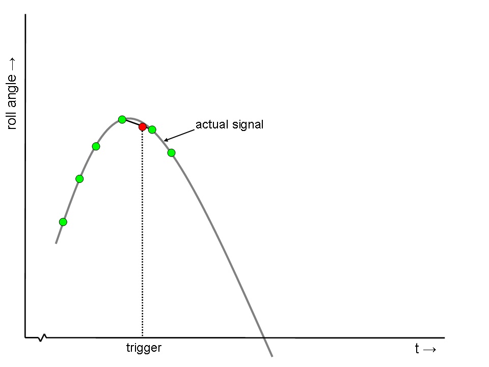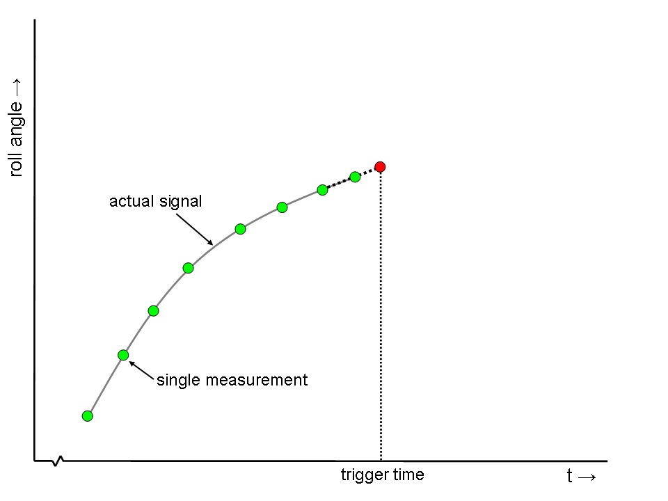 When skewing is disabled however, the last available measurement is used (if it is not older than the maximum age, of course). This usually gives the best results. But sometimes, when the update rate of a system is low and the measured signal exhibits no large changes from the trend, skewing can be enabled. For example, your ship has a gyro with a low update rate and you only make regular, constant turns, skewing can be enabled to improve results.