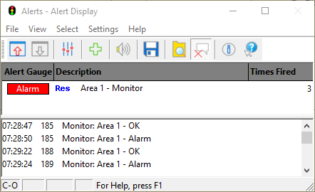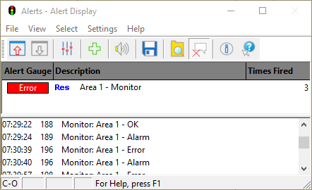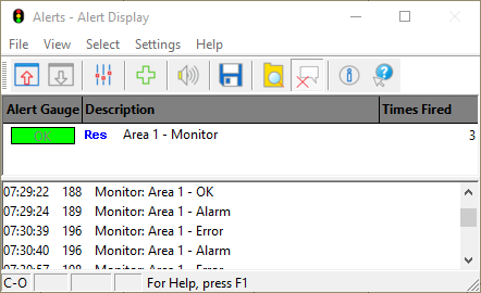 The Area list will be empty at start-up; use the Add button to create a new monitor area.