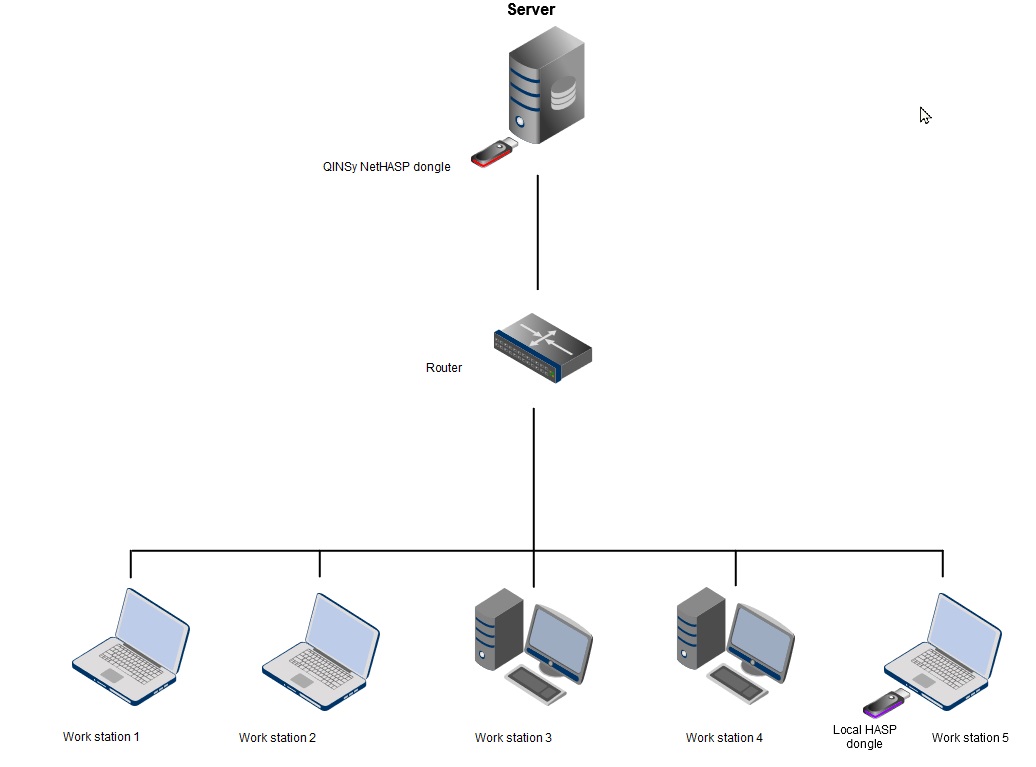 Having a Network HASP dongle installed means there is no need for every work station to have an individual dongle installed.