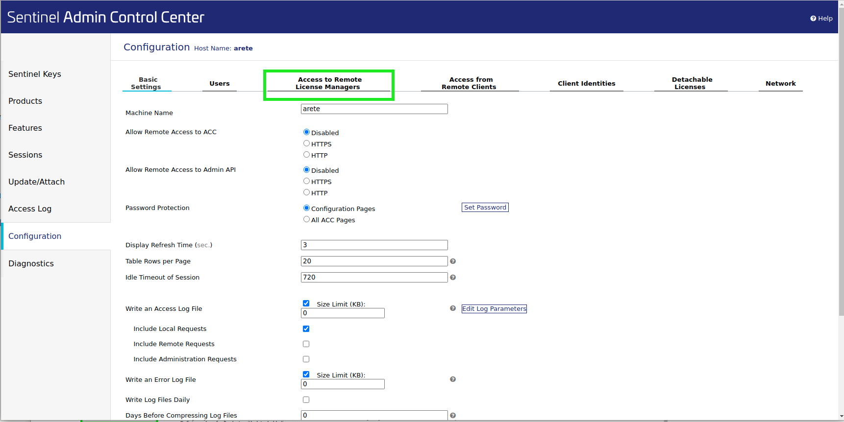 On the next screen near the top, click the tab, Access to Remote License Managers.