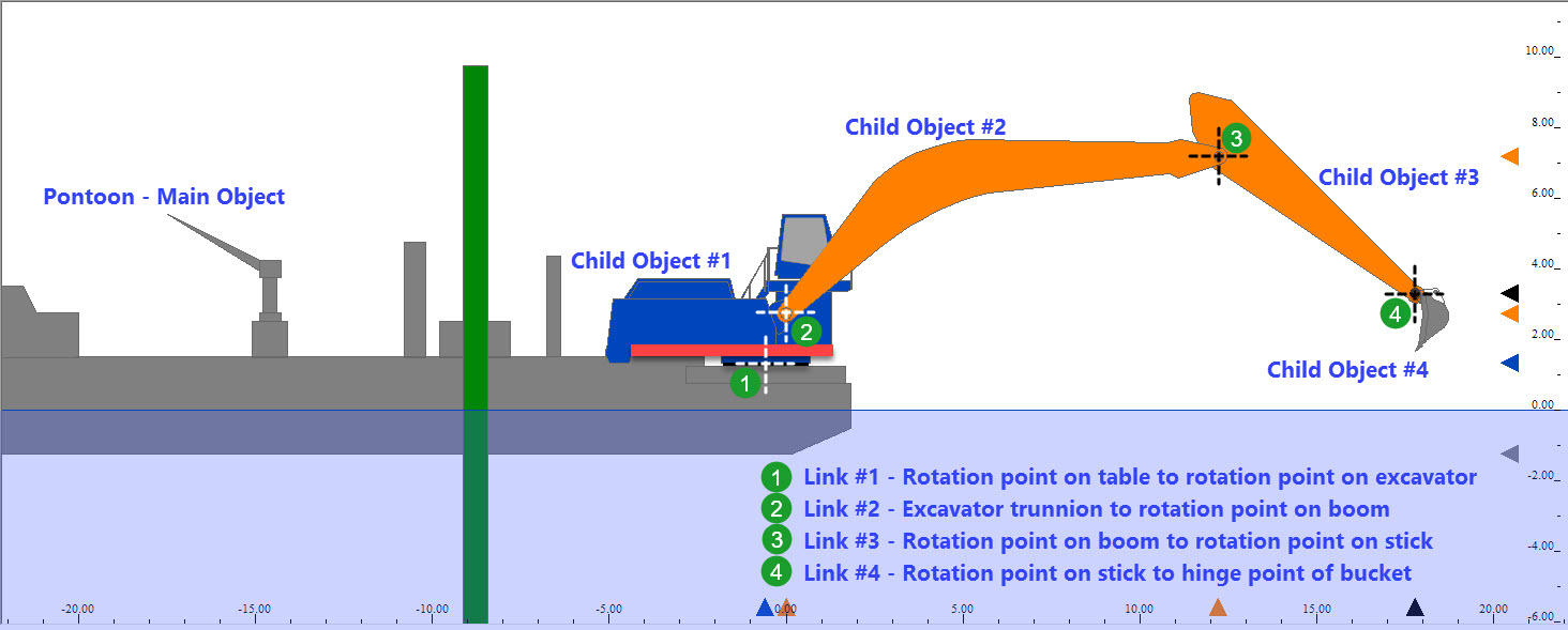 Is getting its position via a Linked object between the Object with its own positioning system and Link Tool objects (Child objects) in between. The position of the Dredging Tool is then being calculated through the offsets of the linked nodes and angles.USBL dX, dX,dZ