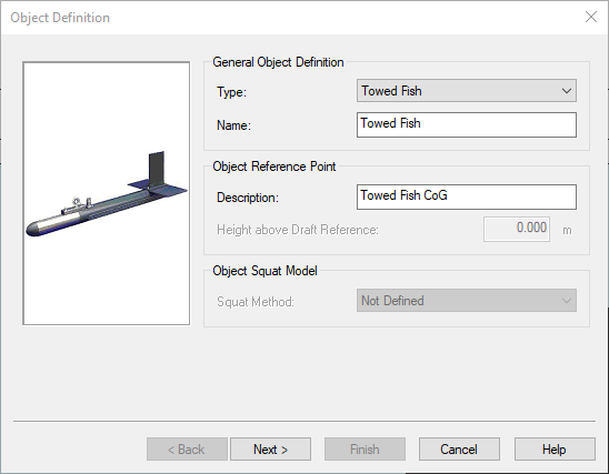 In the Computation Setup when selecting the Towed Fish the following options become available: