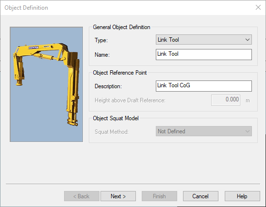 For example a crane comprises a cab (Link Tool) where the operator sits, a boom (Link Tool) that is hinged to the cab, a stick (Link Tool) that is hinged to the boom (Link Tool), and a bucket (Dredge Tool) that is attached to the stick via a hinged or swivel joint.