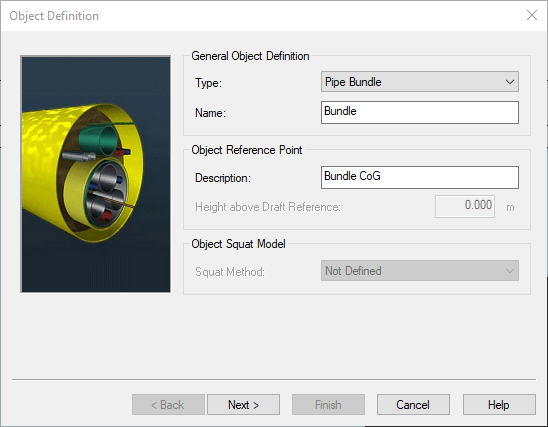 This object type should be used for non-rigid objects below the water surface. An example of this are towed pipe bundles which float beneath the water surface during their tow-out to the oil field.