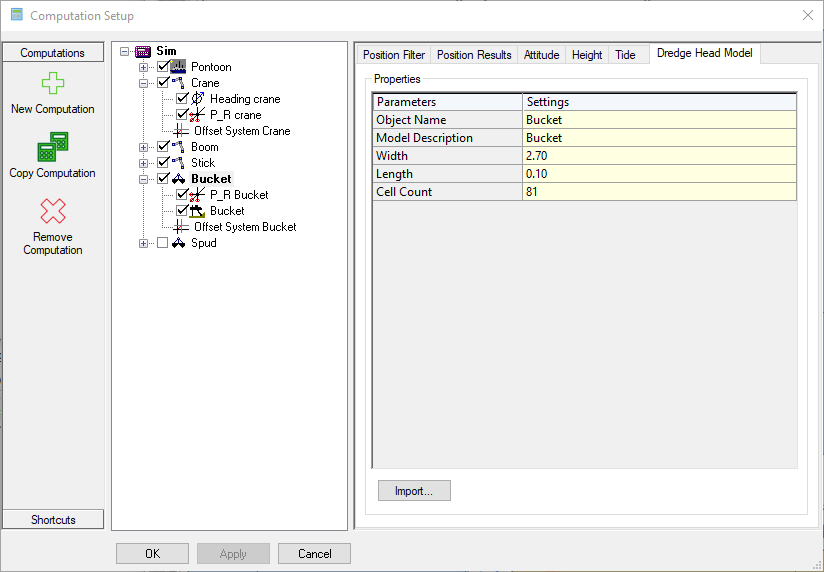 In the Computation Setup when selecting the Dredging Tool the following options become available: