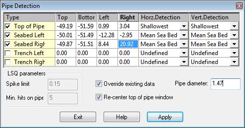 When the 'Detect Pipe' dialog is open the detected pipe position will be stored when you scroll through the data.