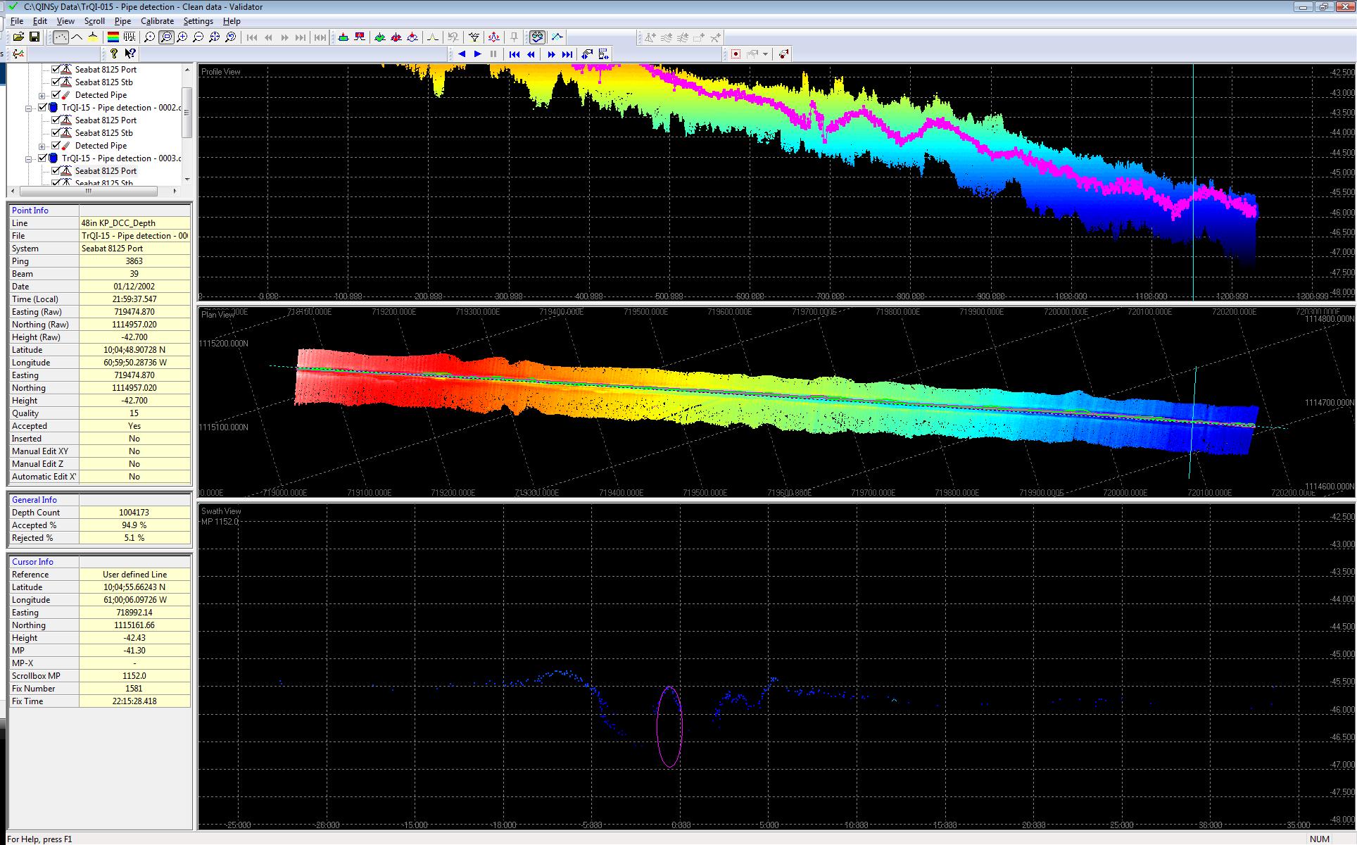 When finished, click 'Exit' to close the 'Detect Pipe' dialog and allow the Validator to plot the detected pipe in the View (purple track).
