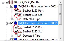 To detect the pipe, ensure that scroll window (blue slice) is at one end of the data set, click Play / Playback to scroll through in one go, from start to finish (left to right in this example).