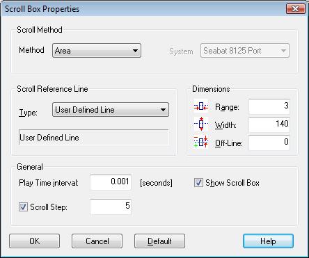 The scroll reference can either be the survey line (that was active when the data was acquired), alternative survey line (selected from a Line Database), transducer track, or user defined.