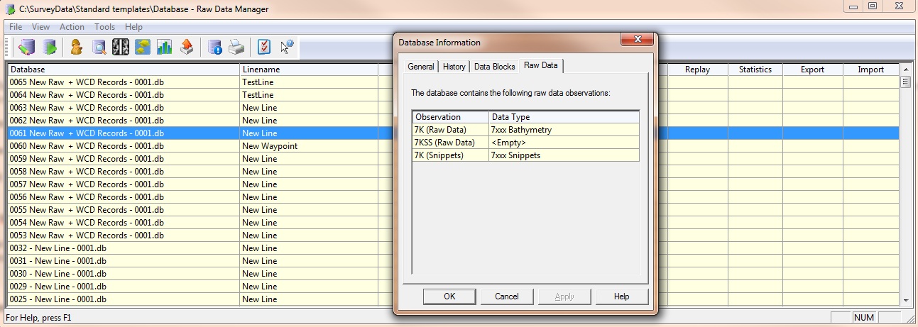- Although the multibeam bathymetry raw (original) data packet is stored in the database, the decoded raw multibeam data is also stored, so this will obviously increase the size of the created databases