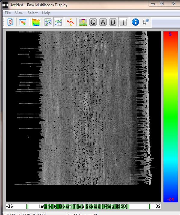 The Raw Multibeam Display can show the various raw data types that a multibeam system can deliver.