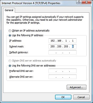 Set the appropriate IP address and Subnet mask on each computer. An example is shown below: