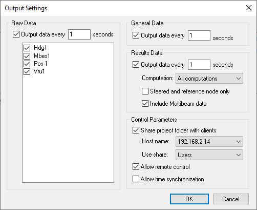 This opens the "Output Settings" dialog where a selection can be made of the items that will be sent to the remote computers.