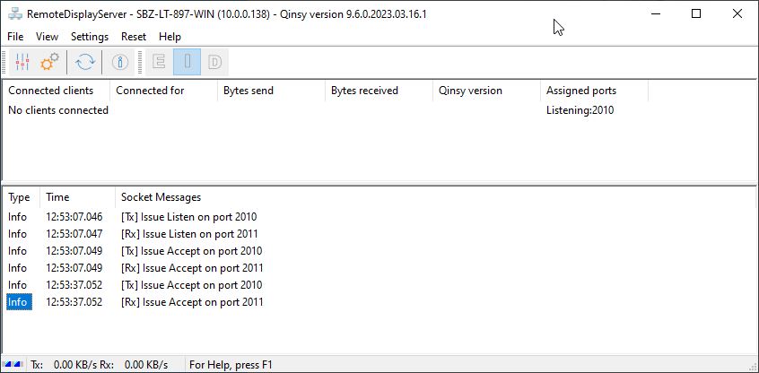 This will start the RemoteDisplayServer window as shown below: