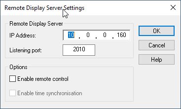 In this dialog the IP address of the Remote Display Server computer should be entered as well as the port on which it is listening.