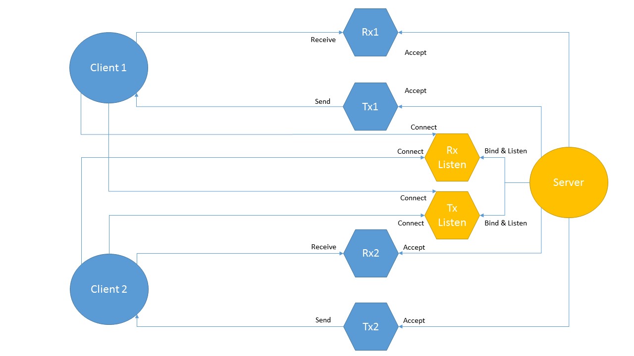 The Remote Display Server gets a separate accepted socket per client, all still bound locally to the configured port, for instance, ports 2010 and 2011.