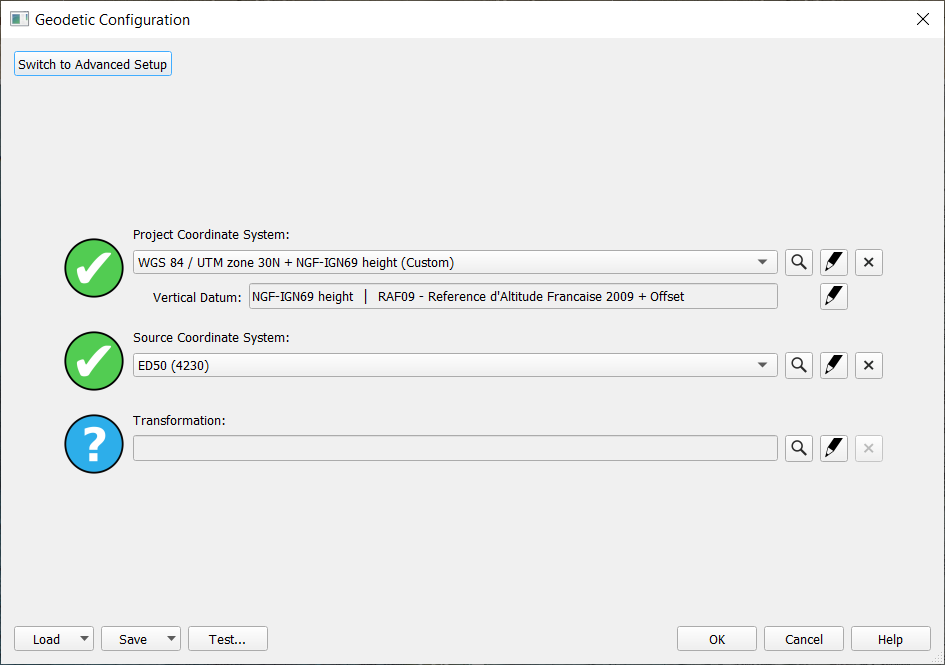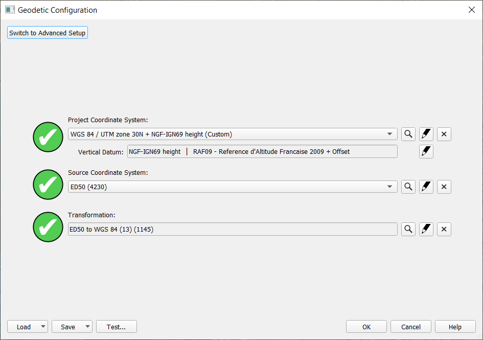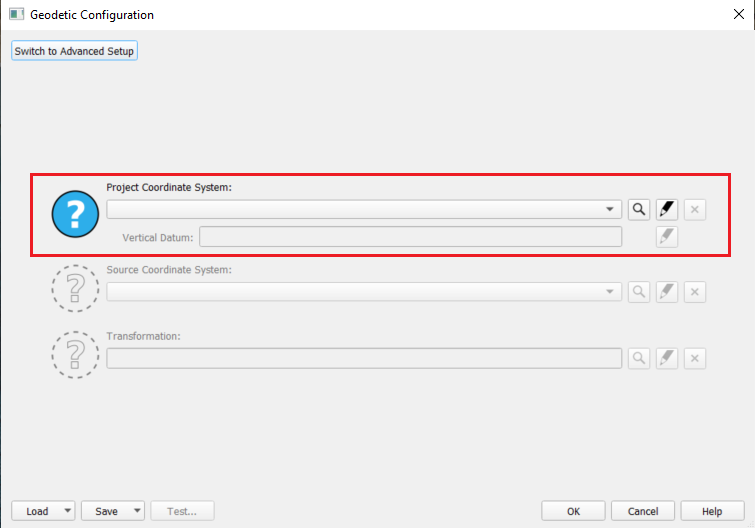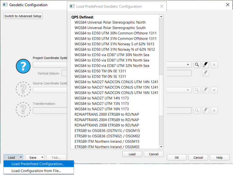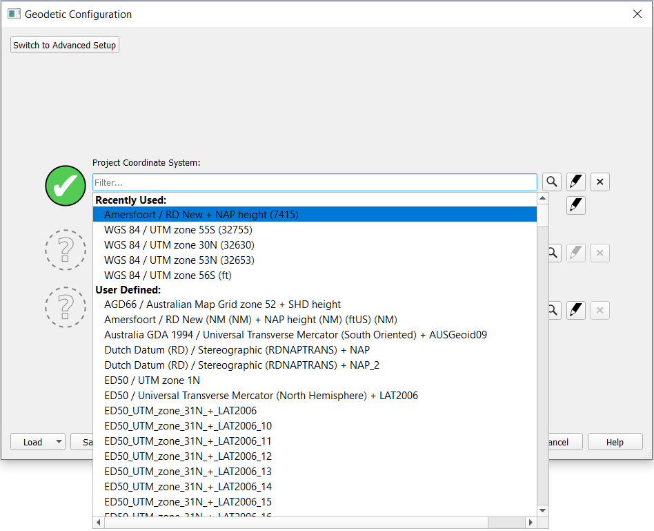 Recently Used geodetic setups if you have done it before and/or saved a custom created one