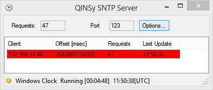 | Always report valid status | Regardless if Qinsy is running or not the server will reply with stratum-1 and no warning. Note that the client will synchronize to the SNTP server computer clock but this may not necessarily be UTC. |