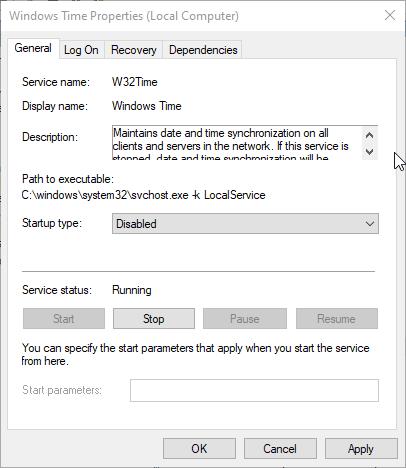 - Find service "Windows Time " and stop it.