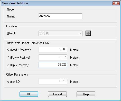 Enter a priori standard deviation for node offsets (default 0.01 m). This can be changed later in the Controller's Setup.