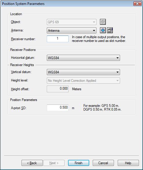 When Accurate is used for the positioning system, there are three different choices: System Driver, Computation Setup or Database Setup for position SD and height SD. The position a priori SD is used for the XY positions, the height a priori SD is used for the Z position.