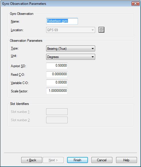 Enter a priori standard deviation for gyro heading(default 0.5°). The accuracy of a gyro is often given as a function of latitude, i.e. secant(latitude)=1/cosine(latitude).