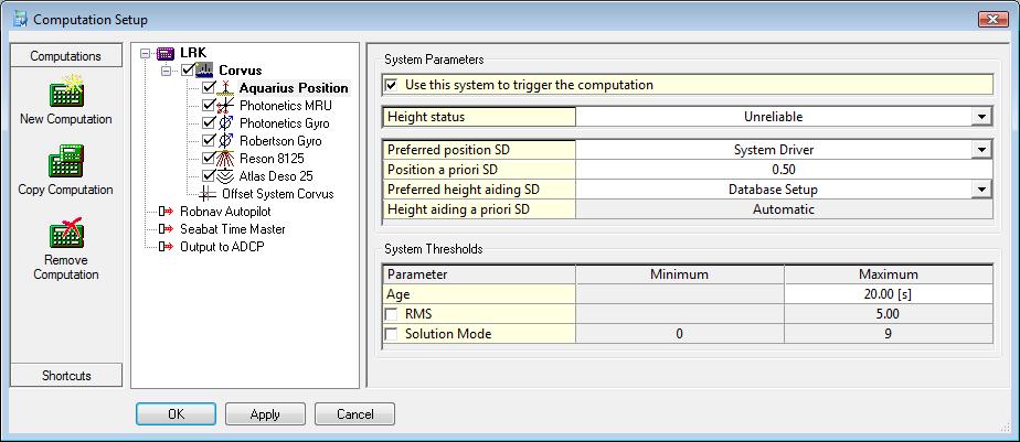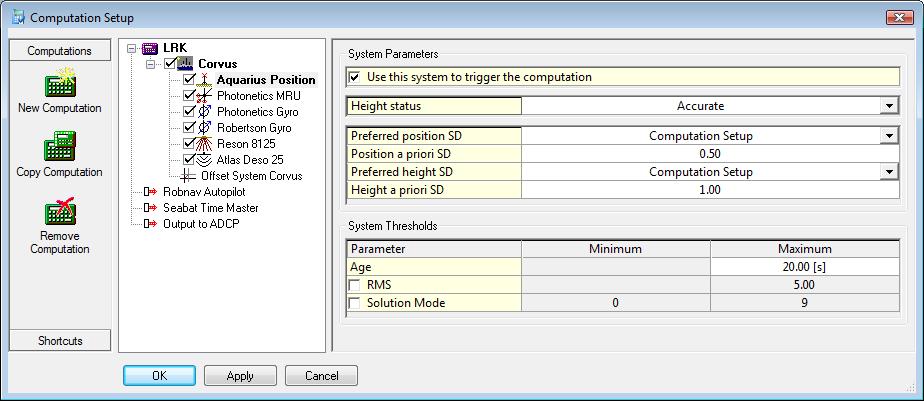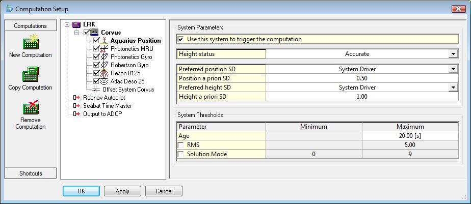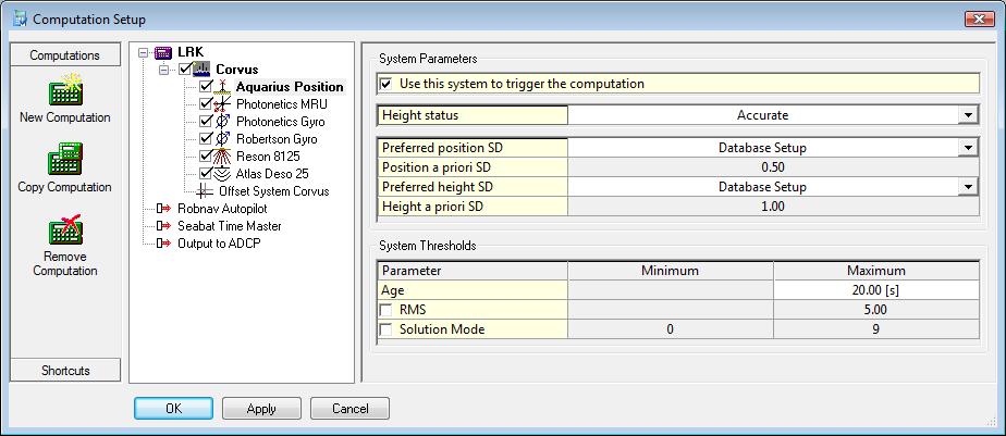 As mentioned before the SD values for the positioning system are very important. They can be entered in the Computation Setup in different ways.