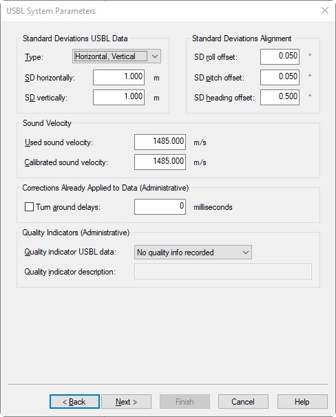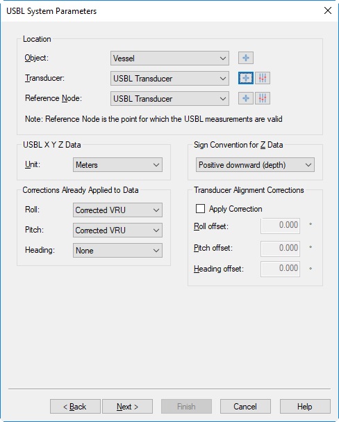 Example of USBL System. - In case no depth sensor is used tick the option Use 'Z' for the Layback or the USBL system.