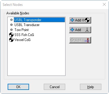 - Select the Node for your USBL transponder or click on Add again to create one.
