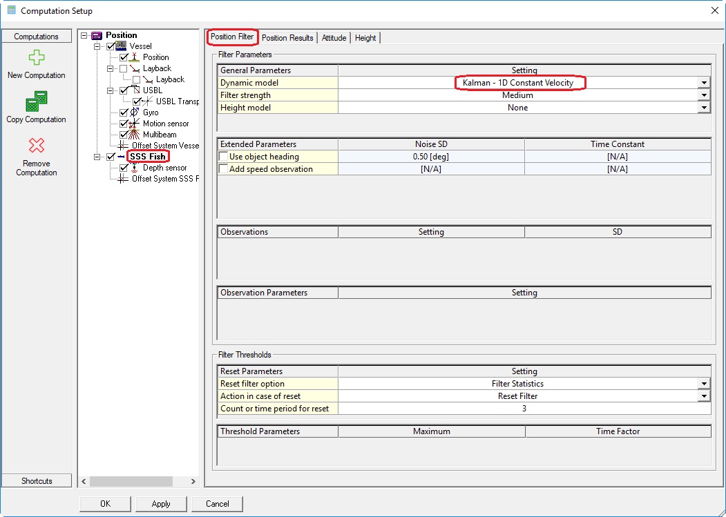 In case the USBL gives noisy data that results in a track that is noisy then a Position filter can be used on the Tow Fish object.